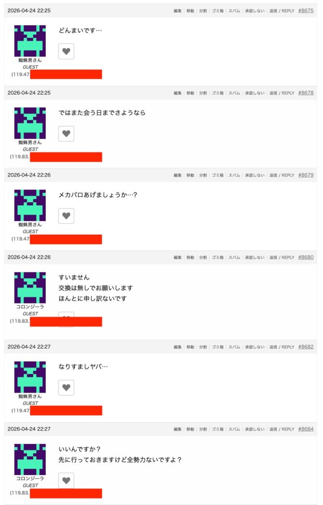 通常、全く別の人間が偶然同じタイミングで同じIPアドレスから書き込む確率は天文学的な数字になります。つまりこれは、同一人物が複数のアカウントを使い分け、自分で自分を騙す一人芝居を演じていたという揺るぎない証拠なのです。