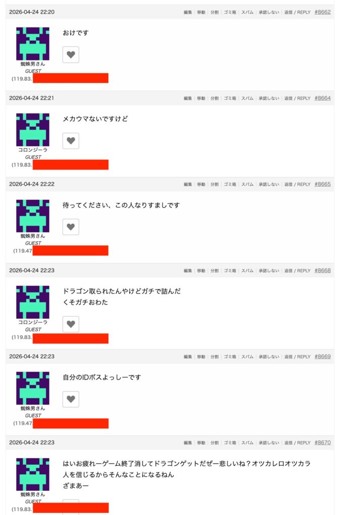 事の発端は、あるユーザーが「なりすましの偽物に大切なアイテムを奪われた、もうゲームを引退する」と掲示板で悲痛な訴えを書き込んだことでした。さらに同じトピック内には、アイテムを奪ったとされる偽物からの心ない暴言も残されていました。